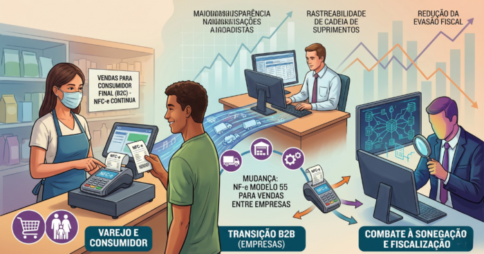 A resposta direta é: combate estruturado à sonegação de impostos. O uso da NFC-e em transações B2B criava uma distorção sistêmica em duas frentes simultâneas.